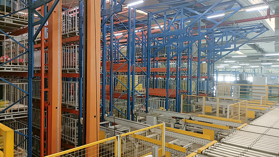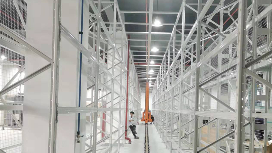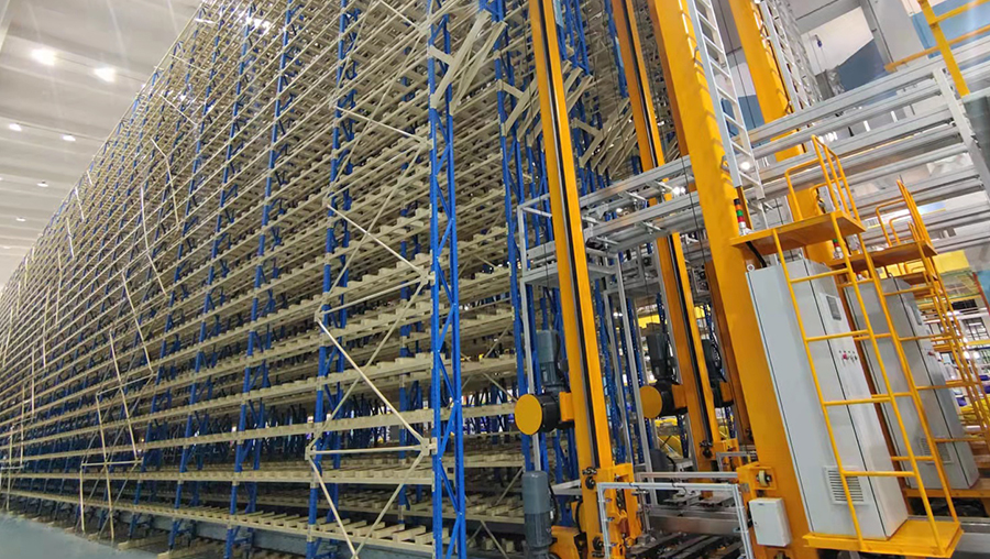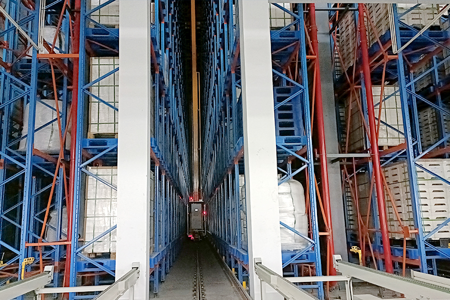 本方案總貨位4352個,高度20m。由6套直式巷道堆垛機(jī)系統(tǒng)、立體貨架系統(tǒng)、6套RGV、6套輸送線、6套拆疊盤機(jī)、稱重系統(tǒng)、RFID系統(tǒng)、WMS倉庫管理系統(tǒng)和WCS倉儲監(jiān)控系統(tǒng)等組成。提高3倍以上倉儲空間面積,綜合生產(chǎn)成本降低20%以上。