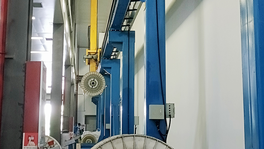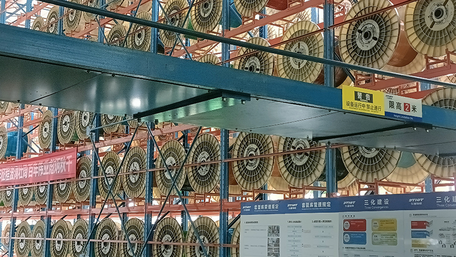 客戶是一家主要從事從事從事銅桿、鋁桿、鋁合金桿生產(chǎn)加工銷售;銅絲、鋁絲、銅鋁合金桿、通信電纜及附件、電力電纜及附件銷售。客戶需求為盤具的儲存,進(jìn)出庫、生產(chǎn)線對接,解決原來采用盤具導(dǎo)軌庫存放盤具占地面積大的問題等問題。