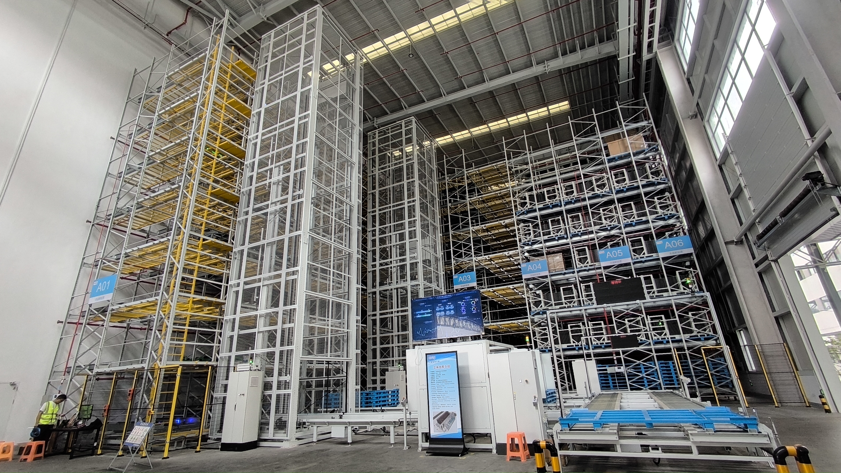 智能柜庫3臺,高度4.5m,托盤54個,單托盤稱重750kg。另配激光指引、恒溫除濕功能。